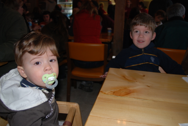 BK and Lex wait patiently for pancakes at Steve's Sugar Shack.